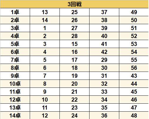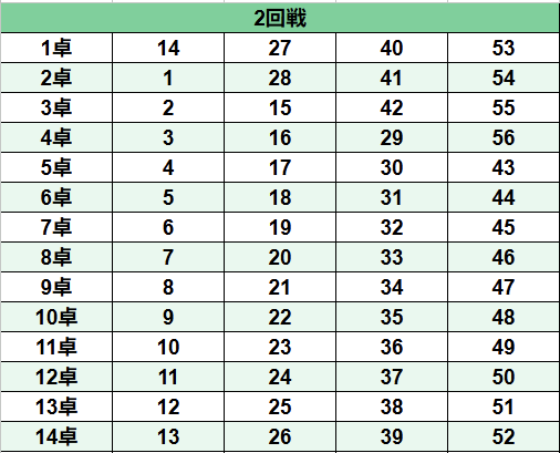 ヴェストワンカッププロ予選② 未分類 コピー 2026.01.142026.01.25 全て必須項目です 何回戦 1回戦 2回戦 3回戦 4回戦 5回戦 卓番号 東家 選手番号 選手名 点数 南家 選手番号 選手名 点数 西家 選手番号 選手名 点数 北家 選手番号 選手名 点数 供託 合計点棒