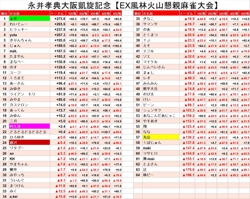 | #64 | 16卓 | 4卓 | 9卓 | 5卓 | 7卓 |
